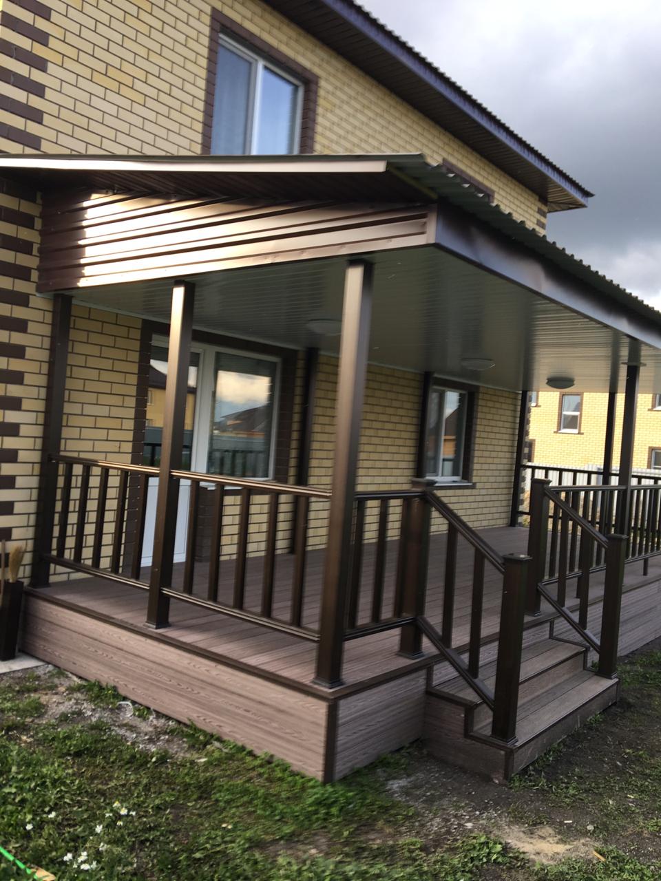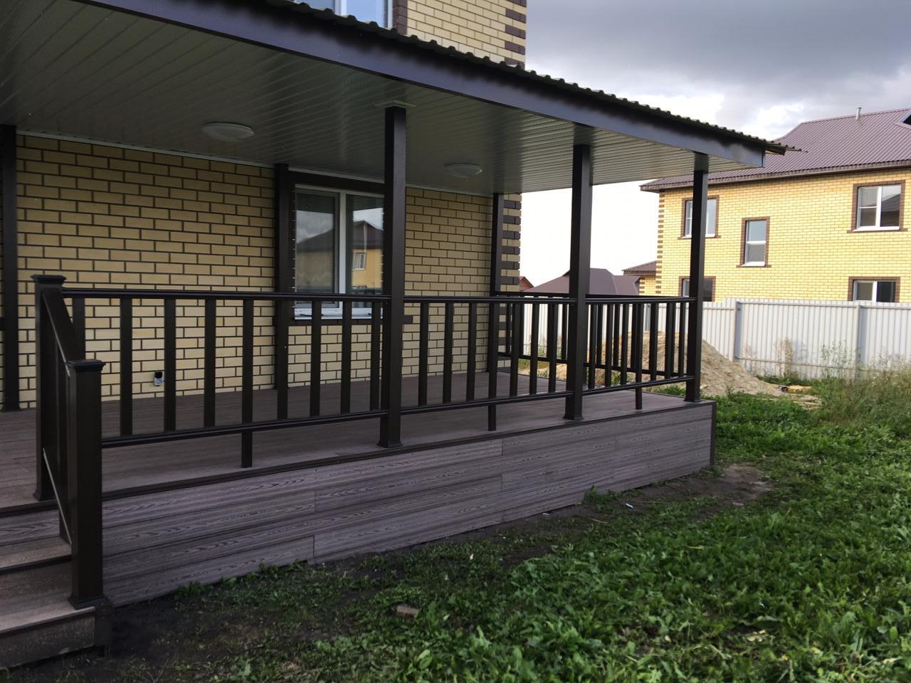 Наши специалисты в Тюменском филиале рассчитали, поставили материалы и осуществили монтаж веранды для частного дома.
